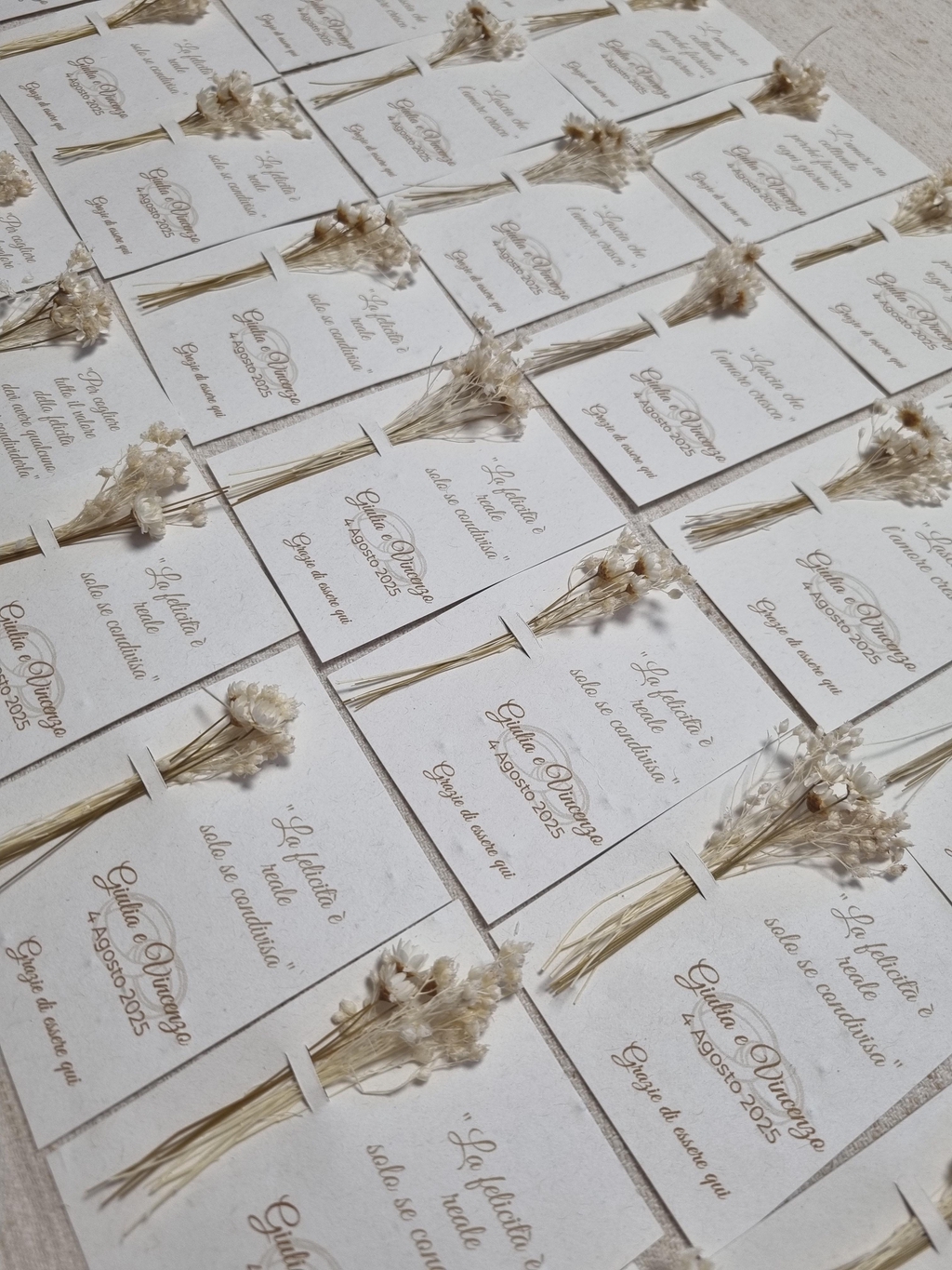 Per i tuoi eventi speciali realizziamo segnaposti e bomboniere totalmente personalizzati. Per maggiori informazioni contattaci al nostro numero whatsapp 3338995187